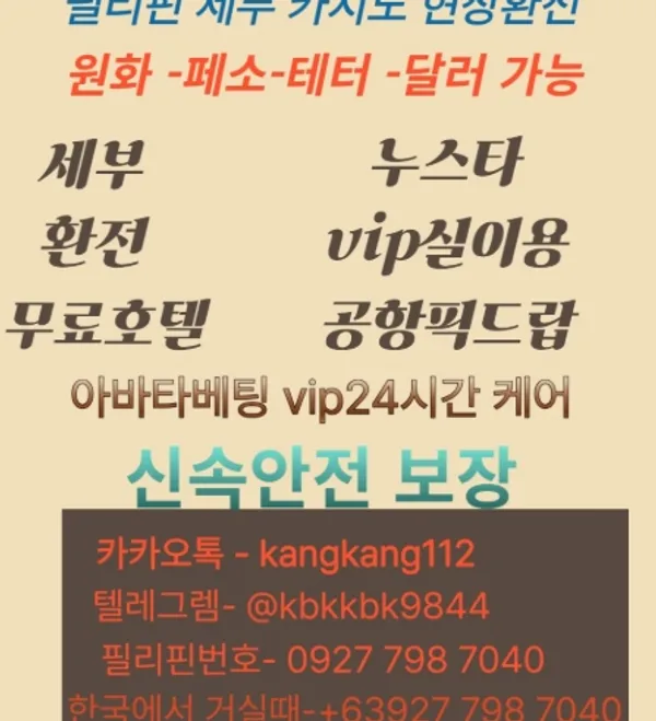 세부 환전소·환전 업소 위치와 안내를 목록 형태로 제공합니다. 원화·달러 등 통화별 요율은 현장·시기에 따라 다를 수 있으니 방문 전 확인이 필요합니다. 저희는 정보 연결을 돕는 플랫폼으로, 실제 거래 조건은 업소에 직접 문의하시기 바랍니다. 세부 여행 준비 시 맛집·마사지 정보도 함께 검토해 보세요.