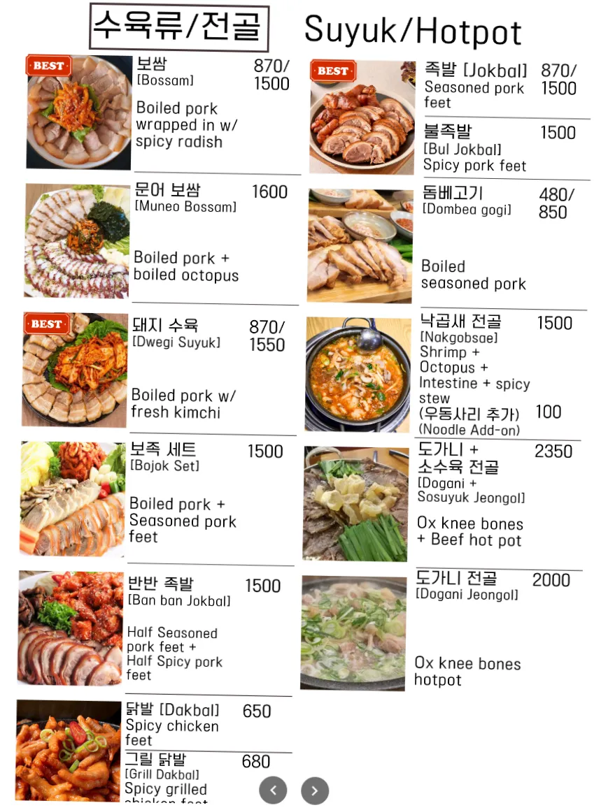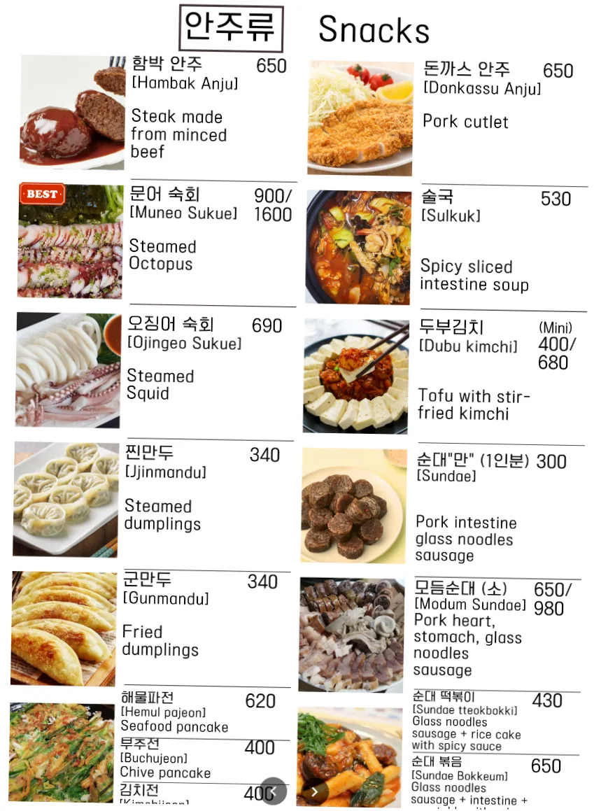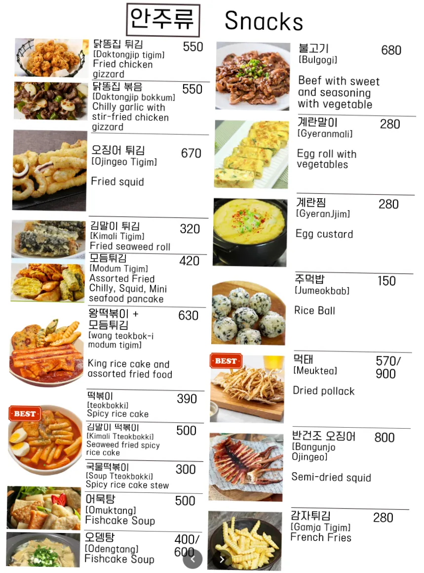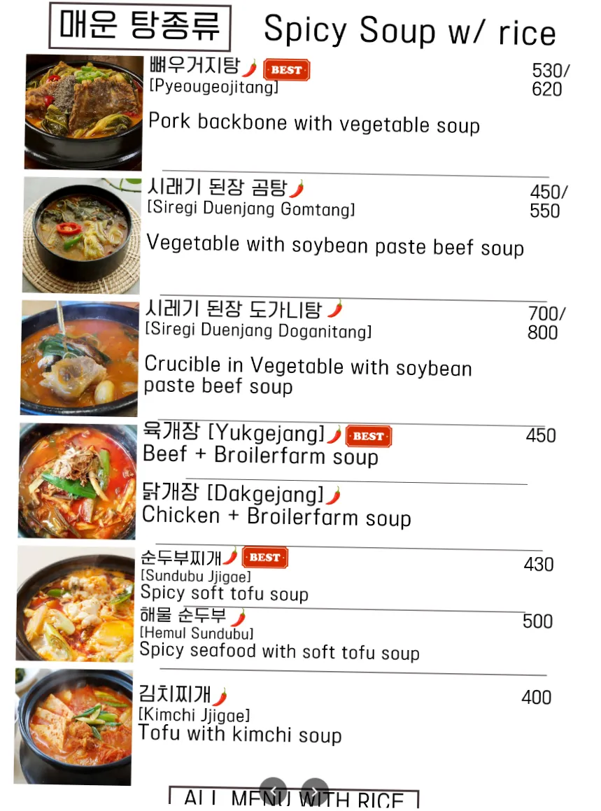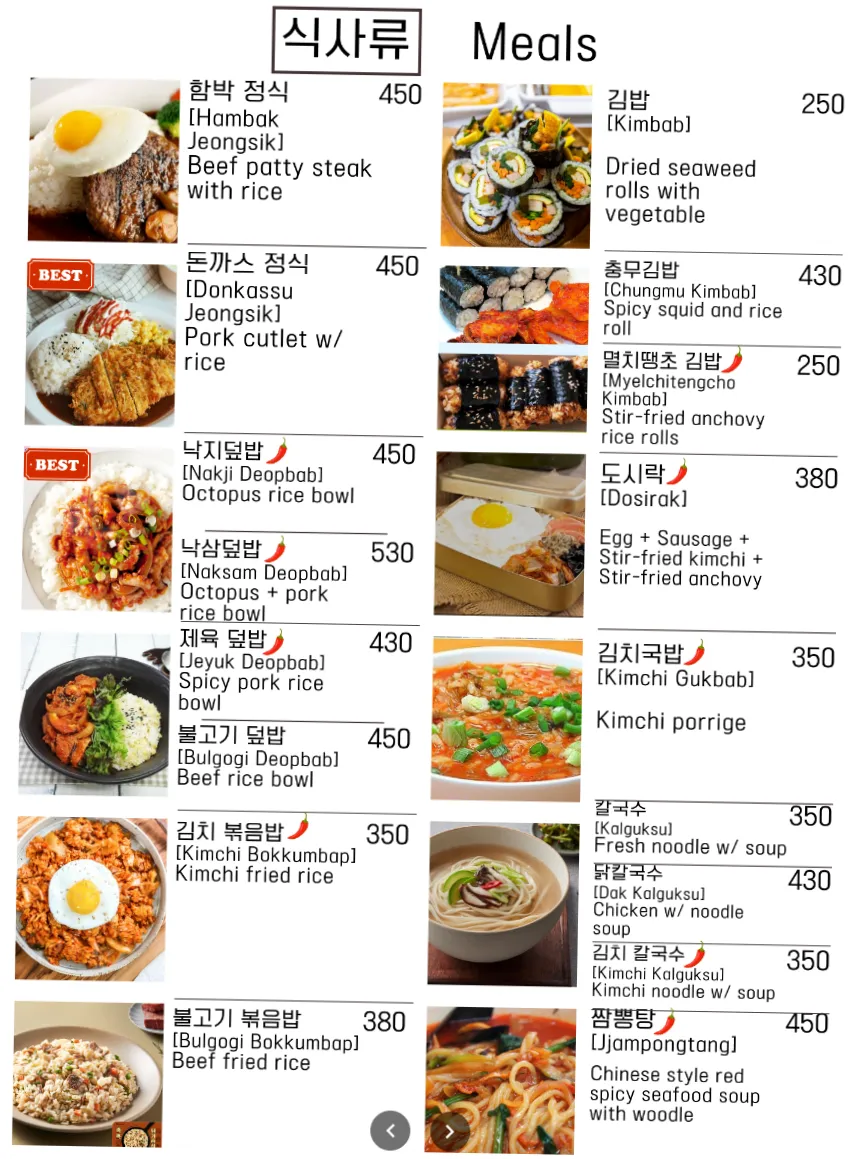 - 다양한 메뉴 구성: 남녀노소 누구나 즐길 수 있도록 한국의 전통 백반부터 매콤한 찌개류, 바삭한 전, 고소한 볶음 요리 등 입맛에 따라 골라 먹는 재미가 있습니다.